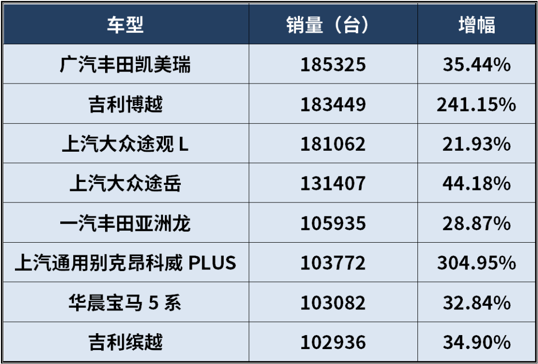 销量增长的原因是多方面的。部分车型由于去年销量基数较低,今年在市场推广和产品升级的推动下,实现了显著增长;另一些车型则通过价格调整,将售价降至更具竞争力的水平,从而吸引了更多消费者。这些因素共同作用,使得燃油车市场在整体承压的情况下,仍能保持一定的活力。