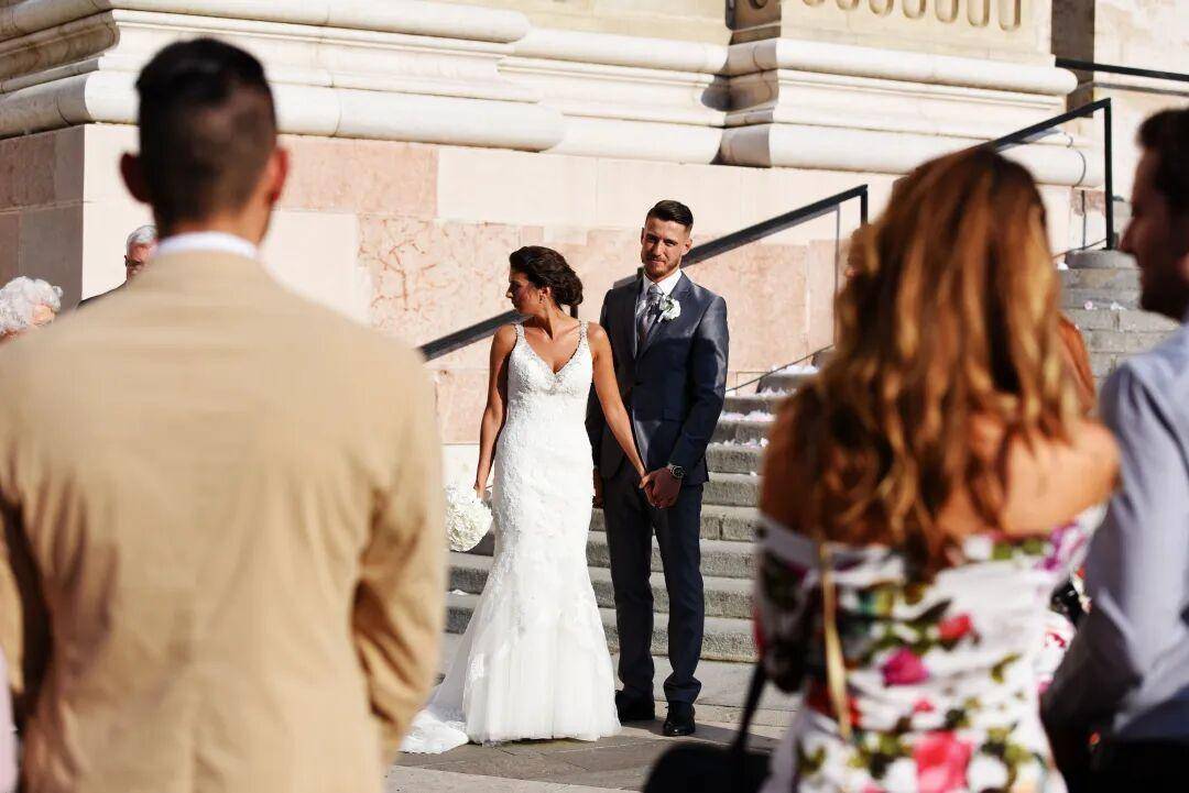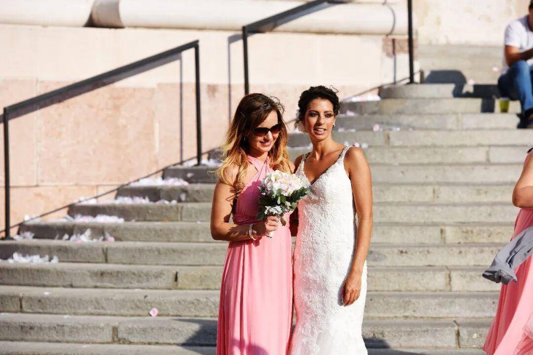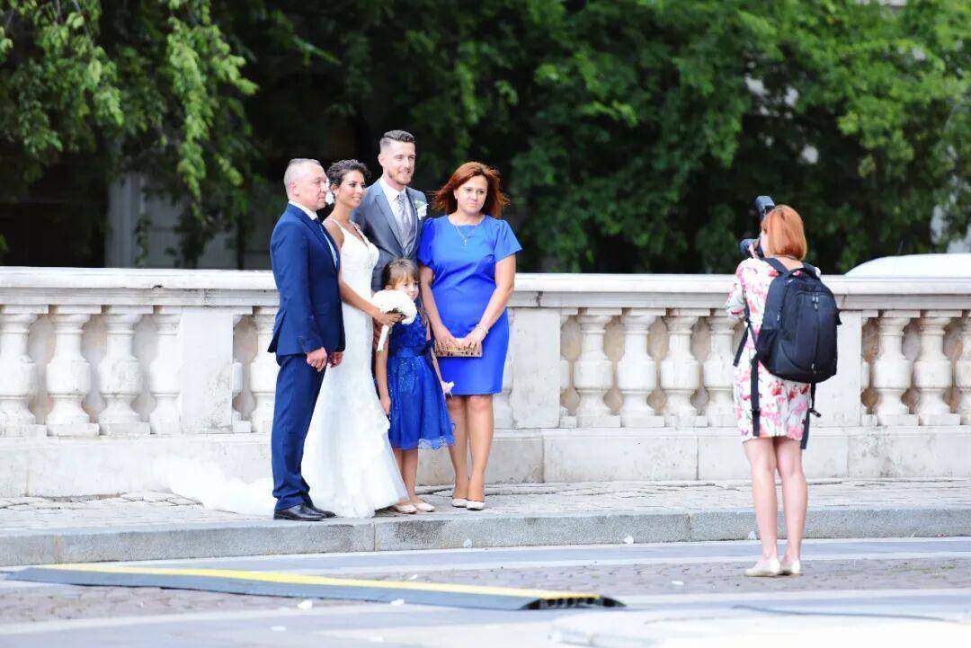 没有肃穆的教堂穹顶,没有漫长的仪轨,只有亲朋好友二三十人,将一对新人簇拥在中央。背景是沧桑的马加什教堂色彩斑斓的屋顶,这一幕,像一幅忽然活过来的古典油画。