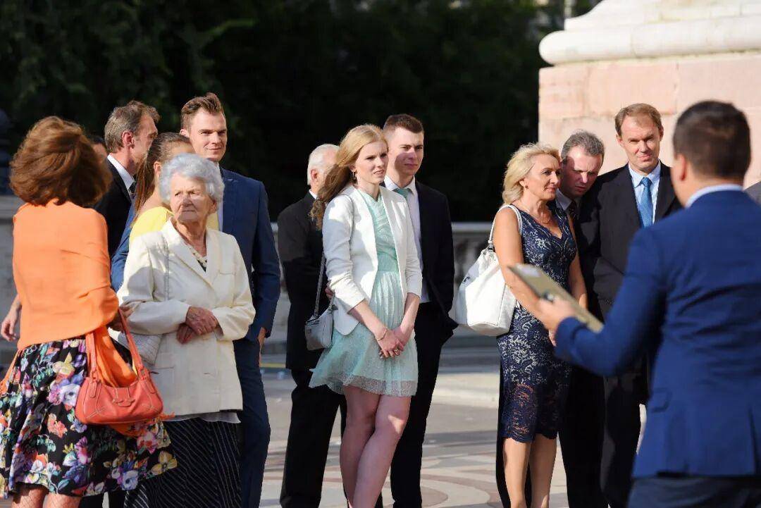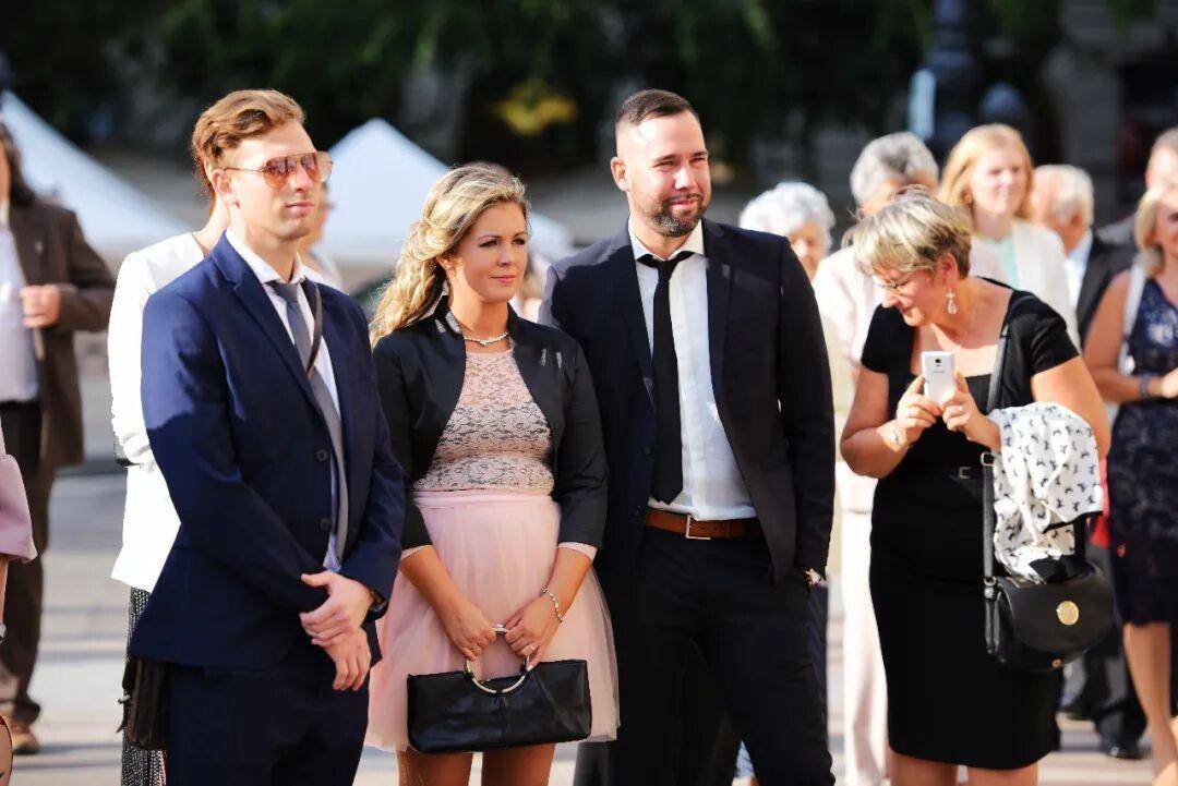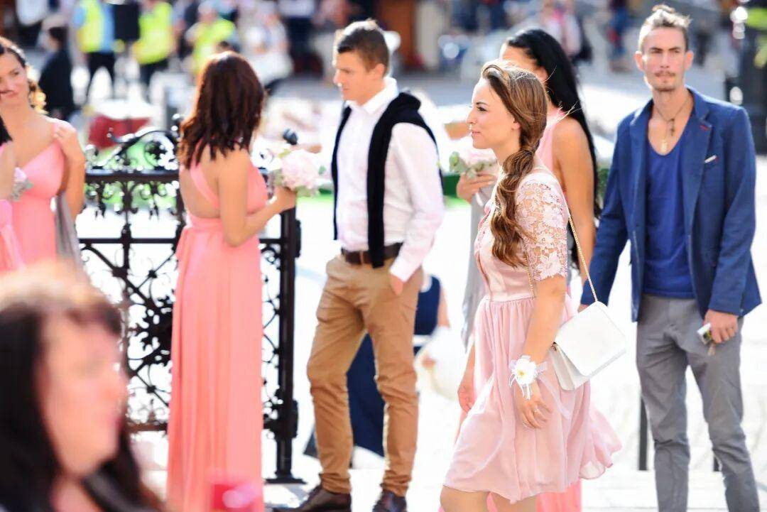 宾客无疑是这场街头婚礼最亮丽的风景。与印象中西欧婚礼常见的随意不同,在场的匈牙利人,无论长幼,都穿着极为得体正式。男士们多是剪裁合身的深色西装,气质沉稳;女士们则身着各式及膝裙装或优雅礼服,妆容精致。